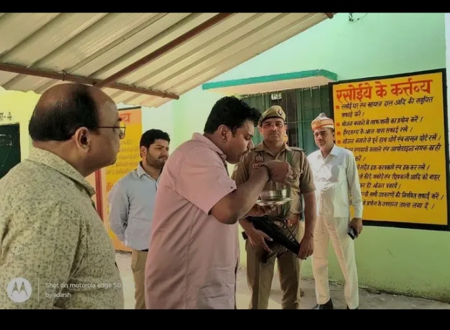 सीतापुर : डीएम ने स्कूल किया औचक निरीक्षण किया और रसोई घर में बना भोजन चेक किया