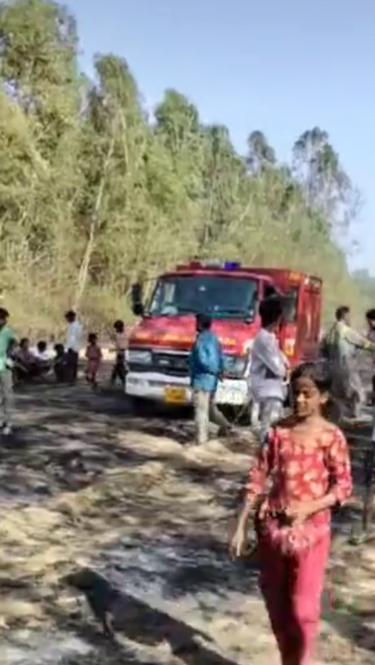 सीतापुर में भीषण आग से 30 बीघा फसल जलकर खाक: ग्रामीणों ने खेत जोतकर आग पर पाया काबू